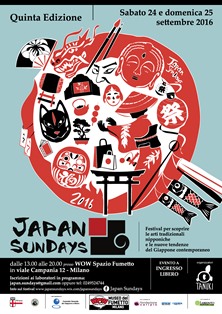 JAPAN SUNDAYS - V EDIZIONE Giunto alla sua quinta edizione, il festival JAPAN SUNDAYS porterà anche quest’anno l’eterogeneo pubblico di WOW Spazio Fumetto – Museo del Fumetto, dell’Illustrazione e dell’Immagine Animata ad approfondire, curiosare e sperimentare la migliore produzione artistica nipponica presente a Milano, attraverso stand dimostrativi, performance, lezioni aperte e workshop distribuiti all’interno degli spazi del museo e del parco. Caratteristica fondante dell’evento è fin dalla prima edizione la gratuità dell’ingresso, pensata per meglio incoraggiare l’incontro e la conoscenza tra artisti, associazioni e pubblico. La manifestazione, nata nel 2012 dal gruppo “Tanuki” Alessandro Castrati, Rossella Marangoni, Maya Quaianni e Laura Ritorto, è stata premiata fin dal primo anno da un successo di pubblico e di critica tali da trasformare l’iniziativa in un evento dalla personalità ben riconoscibile.!Dalla seconda edizione Japan SunDays presenta un focus, ogni anno differente, su uno specifico tema che corre parallelo al programma istituzionale dell’evento. Dalla quarta edizione, il festival occupa entrambi i piani dell’edificio del museo, e si compone di tre sezioni: mostre, laboratori e dimostrazioni. |