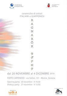 RAGNAROK ラグナロク Non è una mostra che può essere raccontata con le parole questa organizzata dall'Associazione CulturaleC13 - VeneziaE’ una mostra che attraverso le opere create dagli artisti Italiani (Elena Lombardi, Stefano Giglio, Matteo Bagolin) e Giapponesi (Rie Miyatake, Satoko Mori, Hiroko Nakano, Masanori Otsuka, Masako Hara, Ayaka Miyoshi, Sanae Nakata) dei solidi di ceramica, vuole trasmettere uno spunto di riflessione su quanto l’uomo sia in grado di fare, di giusto e di sbagliato; su quanto possa interferire positivamente o negativamente sul corso della propria vita, fino ad influenzare la vita degli altri. E’ un memento quello suggerito dal maestro Shogoro attraverso il significato di “Ragnarǫk”, una parola che ha viaggiato nel tempo, che trova origine nella mitologia Islandese per poi essere riscoperta da Richard Wagner nel “canto dei Nibelunghi”. Una mitologia giunta fino in Oriente, forse anche tramite la religione Hindu (narrata nel libro di Mahabharata), ora entrata nella cultura giapponese come ラグナロク. Il monito non è da interpretare come la fine, il tramonto, l’epilogo ma un’esortazione per proporsi positivamente verso gli altri. |
