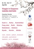 VIAGGIO IN GIAPPONE: SAKURA MATSURI L'iniziativa si inserisce nelle attività che l'Accademia Le Muse promuove sul territorio per incentivare e favorire la conoscenza e lo studio delle arti e cultura tradizionali giapponesi , grazie soprattutto alla presenza del maestro di Sumi-e Shozo Koike. Questo evento continua idealmente il Viaggio nella tradizione giapponese intrapreso nel 2014, che ha visto come prima tappa la Manifestazione con cui l'Associazione ha celebrato i riti di passaggio Setsubun e Hina Matsuri. Questo secondo viaggio sarà una festa per celebrare la fioritura dei ciliegi nell'incantevole cornice di fiorita di Cascina Cerola , e offrirà l'opportunità di scoprire arte tradizione e cultura del Giappone,attraverso un programma fitto di appuntamenti culturali: quali mostre, laboratori, spettacoli, approfondimenti su Sumi-e , Haiku, Kamishibai, Ikebana, Kokedama, Bonsai, Shiatsu, Kyudo, Karate, Aikido, e tanto altro ancora. |