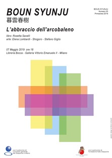暮雲春樹(Boun syunju) 03 Incontro culturale a cura dell'Associazione Collettivo C13, giunto alla terza edizione. In questa occasione sarà presentata la fiaba di Rosetta Savelli "l'abbraccio dell'arcobaleno", rivisitata e tradotta in lingua giapponese dall'artista Rie Miyatake. Shogoro Nomura, Elena Lombardi, e Stefano Giglio, artisti ceramisti che vivono tra l'Italia e il Giappone, esporranno opere ispirate alla suddetta fiaba. |