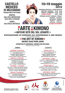 L'ARTE DEL KIMONO - ANTICHE SETE DEL SOL LEVANTE Nel contesto storico-artistico del Castello Mediceo di Melegnano sarà organizzata una manifestazione culturale che presenterà e svilupperà il tema dell’abbigliamento classico giapponese, con la finalità di avvicinare il pubblico ai costumi classici giapponesi, evocativi sia di una millenaria cultura artigianale ed artistica, sia di tradizioni, riti sociali, usi e simboli quasi del tutto sconosciuti alla maggior parte del pubblico occidentale. La manifestazione si articolerà in: •una mostra allestita nelle Sala dell’Imperatore e Sala delle Stagioni, dove verranno esposti diversi preziosi ed antichi Kimono femminili da cerimonia corredati da una selezione di cinture formali Obi Maru •alcuni eventi collaterali di accompagnamento della mostra, che si terranno nella attigua Sala delle Battaglie La manifestazione, promossa dall’Assessorato alla Cultura della città in collaborazione con il ” Centro di Cultura Italia Asia di Milano, è curata e allestita da Rosanna Galli. |