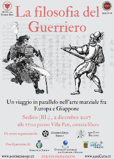 LA FILOSOFIA DEL GUERRIERO Gli scritti di Saviolo sono incentrati sulla formazione dell'uomo d'armi e del Gentiluomo. (Rappresenteranno la scuola:George Livermore, Prevosto del 1595 Club, Luca Basile, Istruttore del 1595 Club) Il Moto Ha Yoshin ryu è una scuola completa di Arti Marziali (Jujutsu, Bojutsu, Kenjutsu),ed è un ramo dell' originale Takagi Yoshin Ryu nata nel 1670 in Giappone e trasmessa ininterrottamente fino a noi grazie all'attuale Soke (caposcuola) Akiyoshi Yasumoto (Rappresenteranno la scuola: L'Hombu Cho per l'Italia, Mauro Toso, 7° Dan, Okuden, Lo Shibu Cho del Doushin Dojo, Loris Giopp, 5° Dan, Okuden) . |