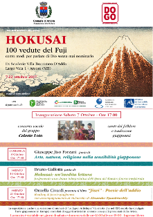HOKUSAI. 100 VEDUTE DEL FUJI. Cento modi per parlare di Dio senza mai nominarlo La mostra, a cura di Bruno Gallotta e Alberto Moioli, è dedicata al capolavoro del Maestro Hokusai, frutto della ricerca e della collezione di Bruno Gallotta.L’esposizione consiste in 102 immagini accompagnate da didascalie che mirano ad offrire un’innovativa chiave di lettura di stampo teologico impostata sui caratteri giapponesi “FU NI”, usati da Hokusai per definire il monte Fuji. Proprio per questo motivo la mostra, che si avvale di una cornice espositiva di grande fascino come le Scuderie di Villa Borromeo d’Adda di Arcore, assume una valenza considerevole. E’ infatti la prima volta, pur nella lunga storia espositiva di questa opera, che tale interpretazione viene chiaramente esplicitata.La mostra nel 2016 è stata presentata dal Comune di Piacenza, con la Biblioteca Passerini Landi, nell’ambito di “Ottobre Giapponese”, rassegna culturale con cui la Città ha celebrato i 150 anni di relazioni tra Italia e Giappone. Inaugurata dal Console giapponese in Italia, successivamente visitata dall’ambasciatore italiano in Giappone, è stata inserita dall’apposito Comitato nelle celebrazioni ufficiali di questo storico evento. L’evento espositivo si avvale di una serie di appuntamenti di grande spessore, pensati per offrire al pubblico la possibilità di approfondire l’argomento. Saranno ospitati durante la mostra Giuseppe Jiso Forzani (8 ottobre), Bruno Gallotta (14 ottobre) e Ornella Civardi con un reading di poesie giapponesi con l’accompagnamento musicale al violoncello di Alexander Zyumbrovskiy (21 ottobre) |