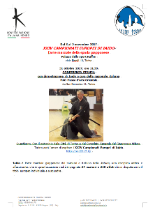 Data: 31 ottobre 2017 Luogo: MAO Museo d'Arte Orientale, via San Domenico, 11, 10122 Torino (TO) Ora: inizio ore 11.30 Con dimostrazione di Iaido Data: 3,4,5 novembre 2017 Luogo: Palazzo dello sport Ruffini, viale Bistolfi 10, 10141 Torino (TO) Ora: inizio ore 9:30, termine previsto ore 17:30 L'ingresso al palazzetto per gli spettatori sarà in ogni occasione gratuito. Mario Lamparelli mfr.lamps@gmail.com 3357722544 |