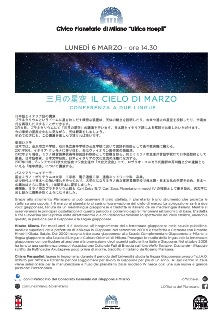 via Mortara 4, Milano È prevista una degustazione di sakè, due testimonianze su Tokyo, una della giornalista Stefania Viti e una della dottoressa Marianna Zanetta, e un concerto live del Duo Vulcarona. Costo 10 €. |