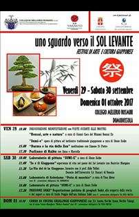 UNO SGUARDO VERSO IL SOL LEVANTE Questo Festival di arti e cultura giapponese, a cura dell’associazione di cultura giapponese Yamato in collaborazione con il Collegio Mellerio Rosmini scral, sarà il primo evento di cultura giapponese nella città di Domodossola.Il territorio dove si terrà il festival attrae da sempre visitatori italiani e stranieri, per la naturale vocazione turistica e commerciale. In particolare il Collegio Mellerio Rosmini in quanto istituto alberghiero da anni realizza corsi di cucina italiana per studenti giapponesi. Inoltre ospita corsi di lingua e di pittura ad inchiostro giapponese. Nasce così un evento che possa presentare ad un pubblico sempre più ampio alcune delle più rappresentative espressioni dell’arte e della tradizione giapponese. |
