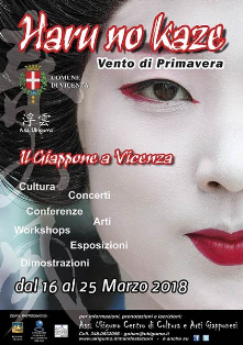 Il GIAPPONE NEL CHIOSTRO - 花見 HANAMI 2018 La Madama Butterfly, specchio dell’epoca Meiji, sarà una conferenza incentrata sull’opera teatrale di Giacomo Piccini. La piccola mostra sul Teatro No di Chicanobu Yoshu ci farà tuffare nel mondo del teatro giapponese durante l’epoca Meiji. Ivo de Palma, noto doppiatore italiano, terrà una conferenza sul doppiaggio.Si potrà assistere gratuitamente a dimostrazioni di cerimonia del tè, tao-shiatsu, spada giapponese, sumi-e, e a tanti altri momenti di cultura. |