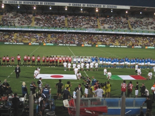 Nella città di Cesena, vicino a Rimini, il 13 agosto si è tenuto il Test Match di Rugby tra Italia e Giappone. Il Test Match è una partita amichevole che si svolge tra gli atleti delle Nazionali, e che Italia e Giappone hanno disputato in preparazione della Rugby World Cup 2011, che si terrà questo settembre in Nuova Zelanda, e alla quale entrambe le squadre parteciperanno. Si è recato a Cesena ad assistere all'incontro l'ex-Primo Ministro Mori, presidente della Federazione di Rugby Giapponese. Prima dell'inizio della partita, 7 "Bambini di Fukushima", che erano venuti quel giorno ad assistere all'incontro, sono stati invitati sul campo dove hanno ricevuto uno scroscio di applausi di incoraggiamento da parte degli spettatori. Questi bambini erano in vacanza in Italia. Per quanto riguarda la partita, nel primo tempo il Giappone ha lottato strenuamente conducendo il gioco con un 17 – 14, ma alla fine ha vinto l'Italia con il punteggio di 31-24. Secondo la Federazione di Rugby giapponese, questa partita rappresenta un importante punto di partenza per un ulteriore rafforzamento in vista della partecipazione alla Word Cup. Non vediamo l'ora che arrivi settembre.