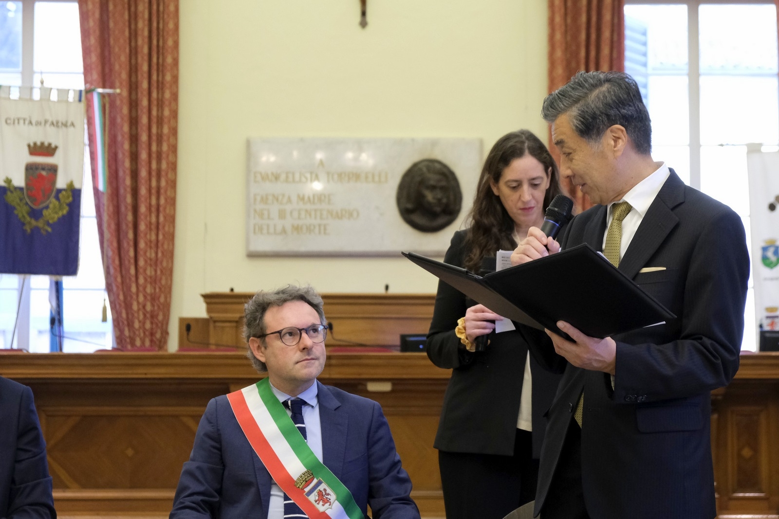 10月22日、在ミラノ日本国総領事館は、ファエンツァ市議会議事堂において陶芸家・平井智一氏に対する外務大臣表彰式を執り行いました。