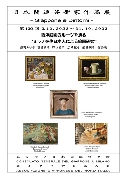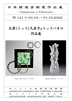 La mostra sarà in programmazione nello spazio pubblico del Consolato fino al 31 ottobre e si potrà visitare da lunedì a venerdì (escluso il giorno di festività nazionale del 10 ottobre), nell’orario di apertura al pubblico, previo appuntamento, confermando il giorno e l’orario della visita a questo indirizzo: culture@ml.mofa.go.jp 在ミラノ総領事館が北イタリア日本人会と共催で行っている『日本関連芸術家作品展 – Giappone e Dintorni』の一環として、 石黒久美子(画家)とPaolo Torri(彫刻家)による作品展を総領事館の受付ホールに展示していますので、来館時にご覧ください※期間は10月3日から同31日までです。