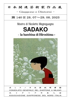 La mostra rimarrà in programmazione fino al 29 agosto, e si potrà visitare da lunedì a venerdì, nell’orario di apertura del Consolato (9.15-12.15 /13.30 – 16.30) tranne il 15 agosto, in cui il Consolato rimarrà chiuso. 在ミラノ総領事館が北イタリア日本人会と共催で行っている『日本関連芸術家作品展 – Giappone e Dintorni』の一環として、 イタリア人のアーティスト、ニコレッタ・マニャグアーニョ氏の作品展「SADAKO」を総領事館の受付ホールに展示しています。