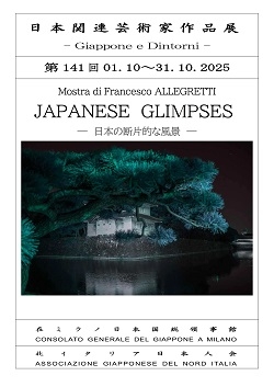 La mostra rimarrà in programmazione fino al 31 ottobre, e si potrà visitare da lunedì a venerdì, nell’orario di apertura del Consolato (9.15-12.15 /13.30 – 16.30) tranne lunedì 13 ottobre, in cui il Consolato rimarrà chiuso per la Festa dello Sport (スポーツの日), festività nazionale del Giappone. 在ミラノ総領事館が北イタリア日本人会と共催で行っている『日本関連芸術家作品展 – Giappone e Dintorni』の一環として、 イタリア人のアーティスト、フランチェスコ・アレグレッティ氏の写真展「日本の断片的な風景」を総領事館の受付ホールに展示しています。