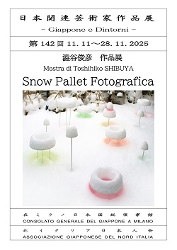 La mostra vi aspetta fino al 28 novembre e si potrà visitare da lunedì a venerdì, nell’orario di apertura del Consolato (9.15-12.15 / 13.30-16.30). 在ミラノ総領事館が北イタリア日本人会と共催で行っている『日本関連芸術家作品展 – Giappone e Dintorni』の一環として、日本人のアーティスト、澁谷 俊彦氏の写真展「スノーパレットプロジェクト」を総領事館の受付ホールに展示しています。