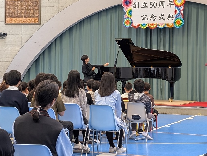記念式典では同校の50周年の歴史を振り返るとともに、ミラノ日本人学校卒業生等による「ミラノっ子音楽鑑賞会」が行われ、50周年を盛大に祝いました。